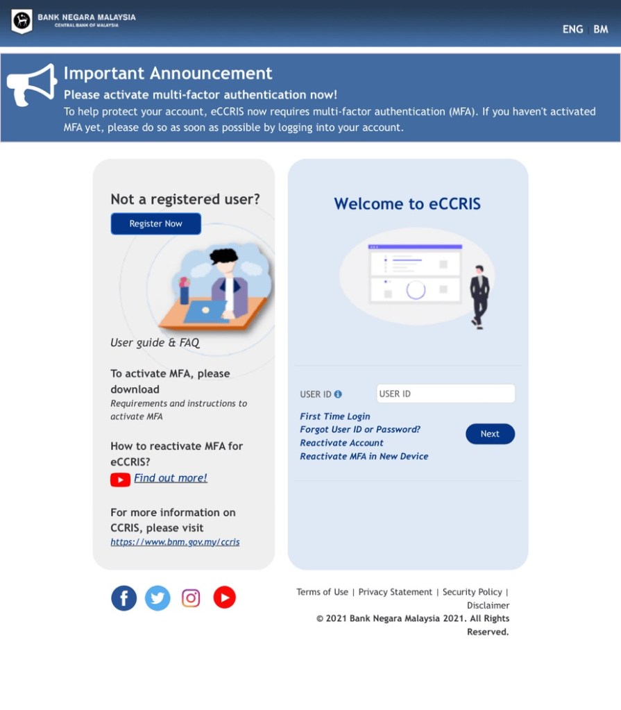 Layari website https://eccris.bnm.gov.my/eccris/pages/sec/login.xhtml#!